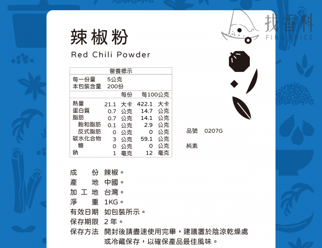 - 製程中不添加人工澱粉、化學添加物、防腐劑,呈現辣椒的原始風味。