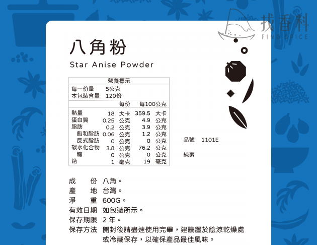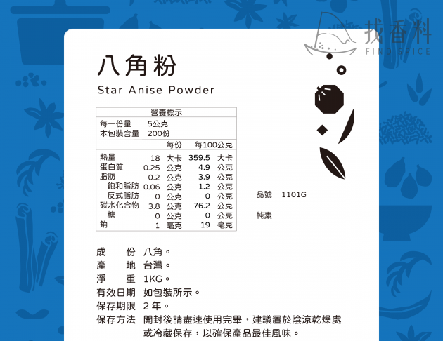 - 精選進口八角乾躁而成,手工挑選、烘乾、磨粉而成。